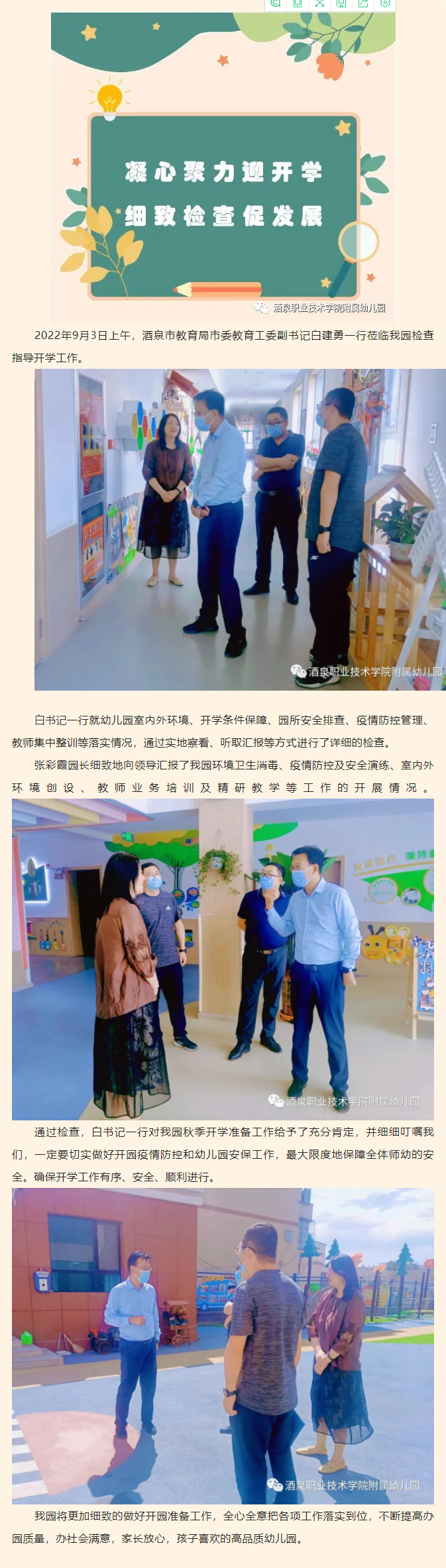 凝心聚力迎开学,细致检查促发展——william威廉中文附属幼儿园迎接市教育局开学工作检查简讯