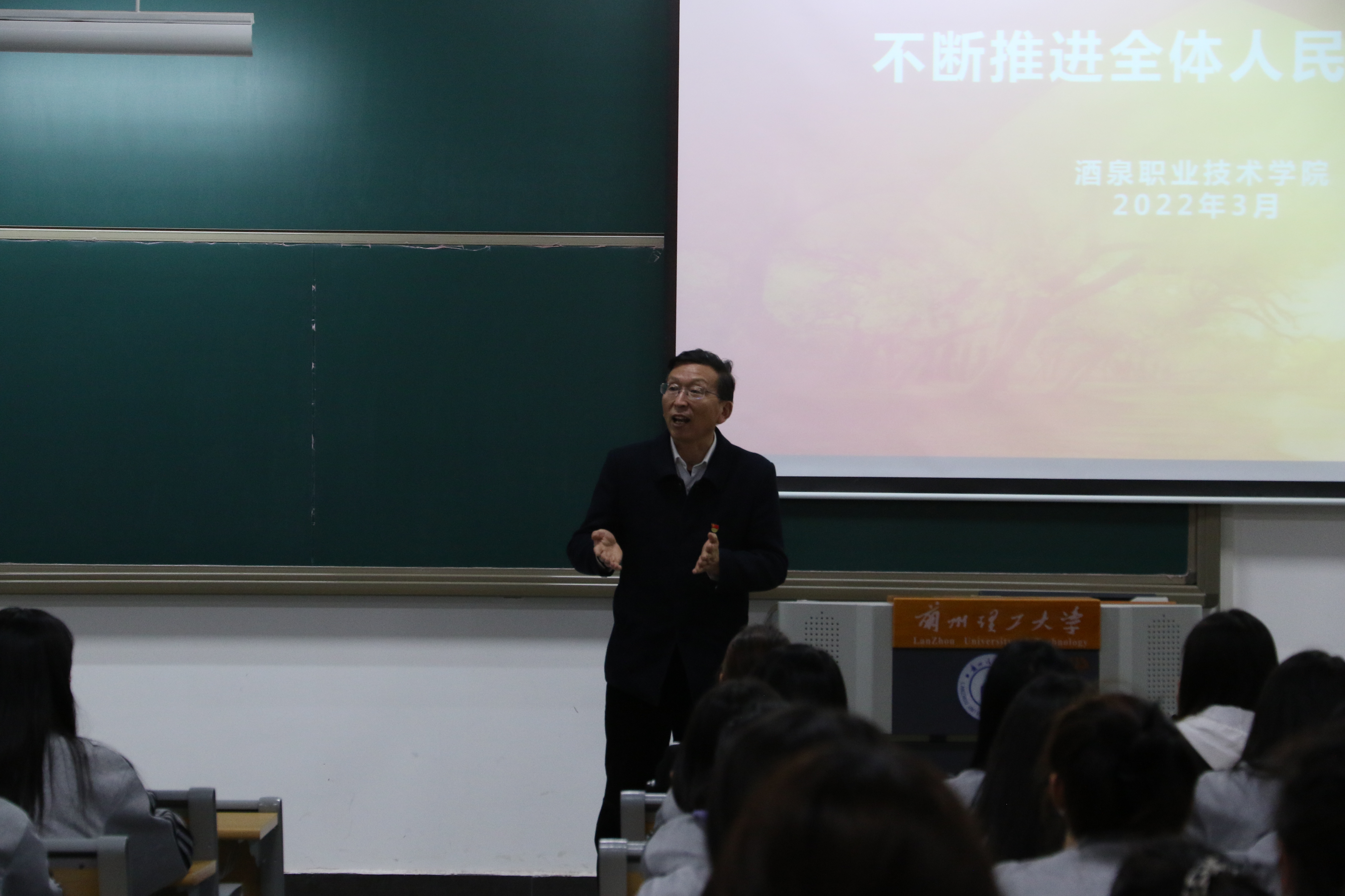 易书记整堂课既有理论高度,又紧贴实际,既有宏观视野,又具现实指导性,生动的语言、鲜活的案例让酒职学子对“共同富裕”这一宏大主题有了更加深入的理解,赢得在场同学们阵阵掌声。同时,他也勉励同学们:作为共同富裕的生力军,要深刻认识到身上所肩负的历史重任,青春逢盛世,奋斗正当时,青年学子要坚定立场、学好本领,积极投身于共同富裕的伟大事业,在不懈奋斗追求中实现人生价值。