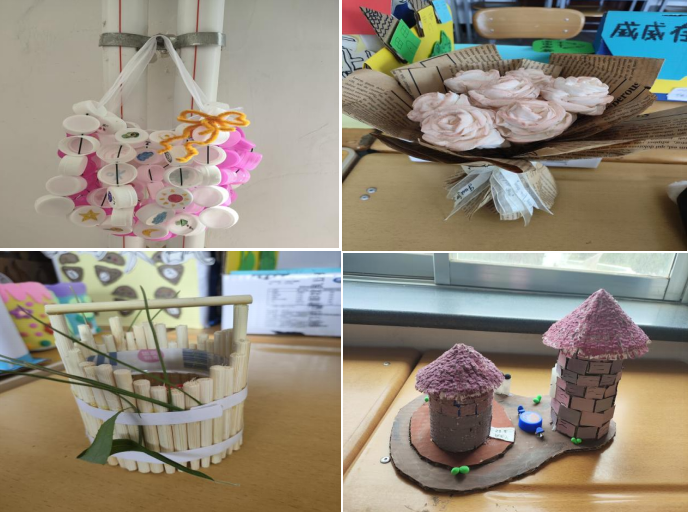 绿色实践制作,践行发展理念。学生利用生活中的“旧物”或“废品”,发挥想象力,结合科技、环保观念,经过动手实践,实现了“变废为宝”。同时开展环保手抄报比赛,用一幅幅图文并茂、主题鲜明的手抄报,展示了节水、节粮、节电、节纸的重要性,倡导学生做好垃圾分类,共建绿色校园。