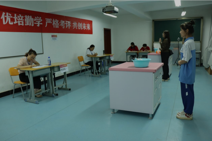 此次考评共分为理论知识机考和实操技能考试两个部分,全面考查考生在早教、婴幼儿照护、保健等模块的理论知识和实操能力。10日上午8点,工作人员有序组织考生进入考场进行了理论考试。随后通过现场抽题、物资准备、备考、现场展示等环节进行了实操技能考试,并按规定程序完成了学前类和护理类两个板块内容的考核。现场的考评员则严格按照要求评分,全程监控记录,保证考核评价的公正透明。