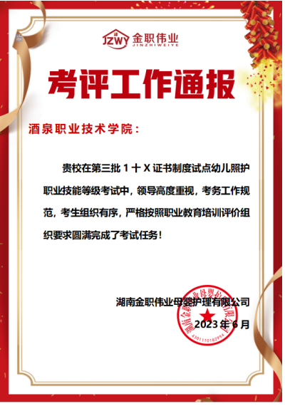 作为“1+X”幼儿照护证书试点单位和考点,本次是WilliamHill中文第三次酒泉师范学校校校合作承办“1+X”幼儿照护职业技能等级证书(中级)培训考评。本次考评工作得到了评价组织机构的好评。学院将继续以“1+X”职业技能等级证书制度试点工作为抓手,持续落实教育部1+X证书制度的新要求,积极对接相关企业及中职院校,强化培训育人、服务育人的理念,提高职业教育适应性和社会认可度,并认真总结和推广教育社会培训工作中的典型经验和成功做法,不断提高社会培训工作的针对性和实效性。