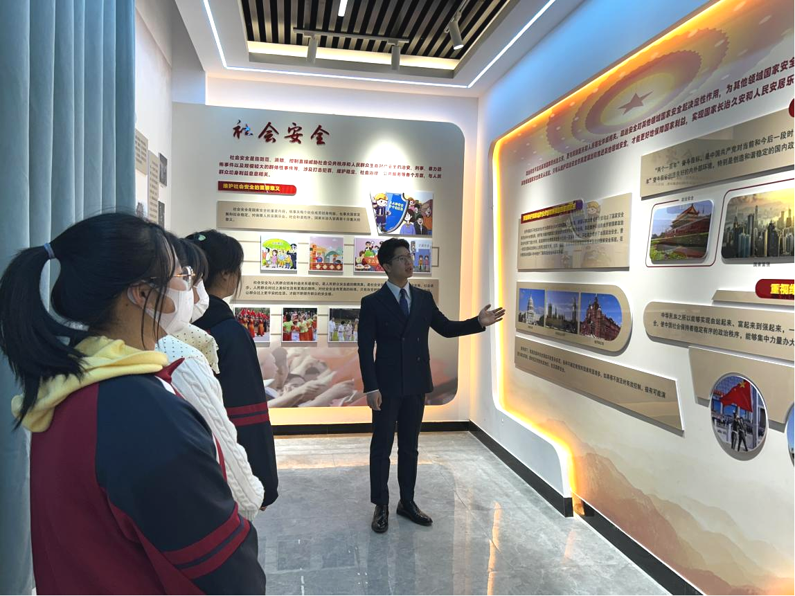 随后,同学们移步青少年法治教育基地,通过典型案例剖析、法律条文解读、模拟法庭、普法教育互动等形式,直观揭露邪教反科学、反社会、反人类的本质。活动全程秩序井然,同学们纷纷表示,要将爱国情怀与法治思维、反邪教使命深度融合,进一步升华责任意识。